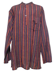 アジアン衣料 コットン・ネパール・ストライプメンズブラウス